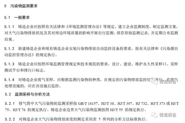 現(xiàn)摘錄T/CFA030802-2—2017中“4排放控制要求”、“5污染物監(jiān)測要求”、“6實施與監(jiān)督”部分。前三部分“1范圍、2規(guī)范性引用文件、3術(shù)語與定義”請自行登錄中國鑄造協(xié)會網(wǎng)站查閱。