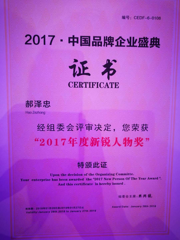 ? ? ? ?在此次盛典上,中科宇杰董事長郝澤忠先生作為一個走在技術創(chuàng)新的前列的大型現代化企業(yè)的奠基者和管理者,憑借自己的行業(yè)實力,從國內眾多候選企業(yè)家中脫穎而出,被組委會授予“2017年度新銳人物獎”。
