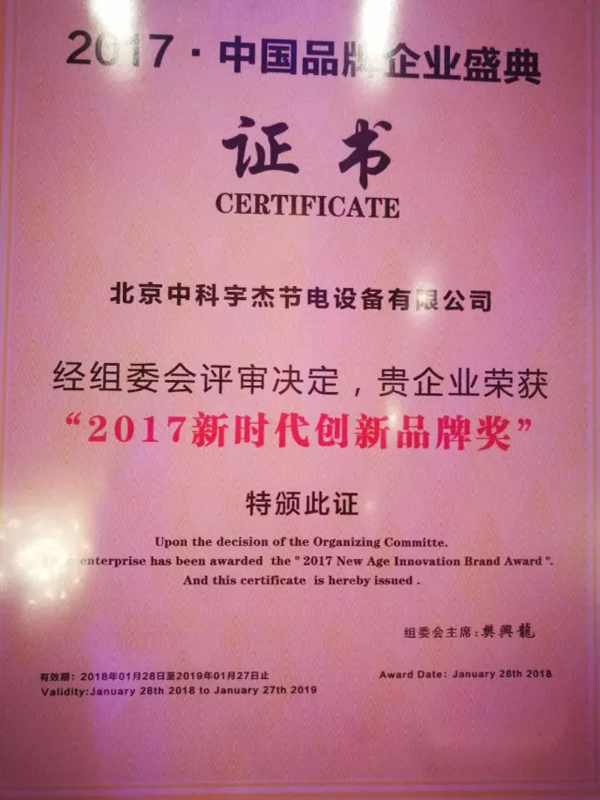 ? ? ? 近幾年,中科宇杰在郝澤忠先生的帶領下,秉承不斷的技術創(chuàng)新,穩(wěn)定的產品品質,良好的售后服務,誠實的公司信譽,引領節(jié)能行業(yè)潮流。公司立足于長遠發(fā)展,在建立現代企業(yè)制度的基礎上,建立了一套完善的人事管理、生產管理、質量管理、財務管理、營銷管理、等綜合管理體系。曾先后獲得“2016年度中國好技術”獎項和“2017年國家高新技術企業(yè)”等認定。