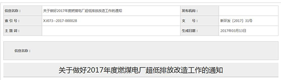 關于新疆維吾爾自治區2017年度燃煤電廠超低排放改造工作的通知