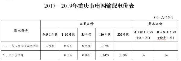 重慶電網(wǎng)2017—2019年分電壓等級輸配電價詳見附表。國網(wǎng)重慶市電力公司執(zhí)行此輸配電價標(biāo)準(zhǔn)。