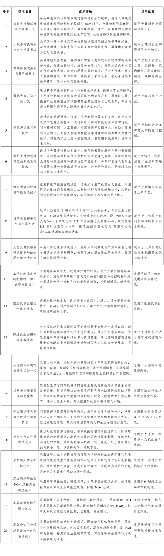 為貫徹落實(shí)《中華人民共和國節(jié)約能源法》、《山西省節(jié)約能源條例》和《國務(wù)院關(guān)于印發(fā)“十三五”節(jié)能減排綜合工作方案的通知》,加快重點(diǎn)節(jié)能技術(shù)的推廣普及,引導(dǎo)用能單位采用先進(jìn)的節(jié)能新工藝、新技術(shù),提高能源利用效率,省經(jīng)信委組織編制了《山西省工業(yè)節(jié)能技術(shù)推薦目錄(2017)》,現(xiàn)予發(fā)布,請(qǐng)有關(guān)單位及企業(yè)到山西省經(jīng)濟(jì)和信息化委員會(huì)網(wǎng)站(www.shanxieic.gov.cn)查閱、下載。本目錄涉及煤炭、化工、焦化、電力、鋼鐵、建材、有色等行業(yè),共20項(xiàng)節(jié)能技術(shù)。