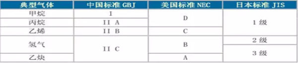 (2)氣體或蒸氣爆炸性混合物等級的劃分,分為ⅡA、ⅡB、ⅡC三種,這些等級的劃分主要是依照最大試驗安全間隙(MESG)或最小點燃電流(MICR)來區分的。