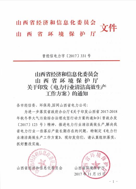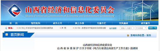 由山西經信委、山西環保聽聯合印發《電力行業清潔高效生產工作方案》。方案要求,堅決淘汰關停環保、節能不達標機組。2018年1月1日起,所有運行的煤電機組必須達到環保超低排放要求。