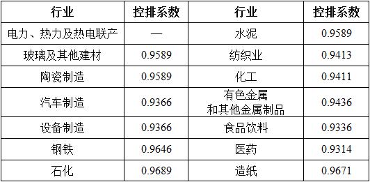 行業控排系數(具體數值見附件1-1)是用于核定企業既有設施排放配額的參數。依據各行業減排成本、減排潛力、行業競爭力、各行業碳排放歷史變化趨勢等因素綜合測算確定。