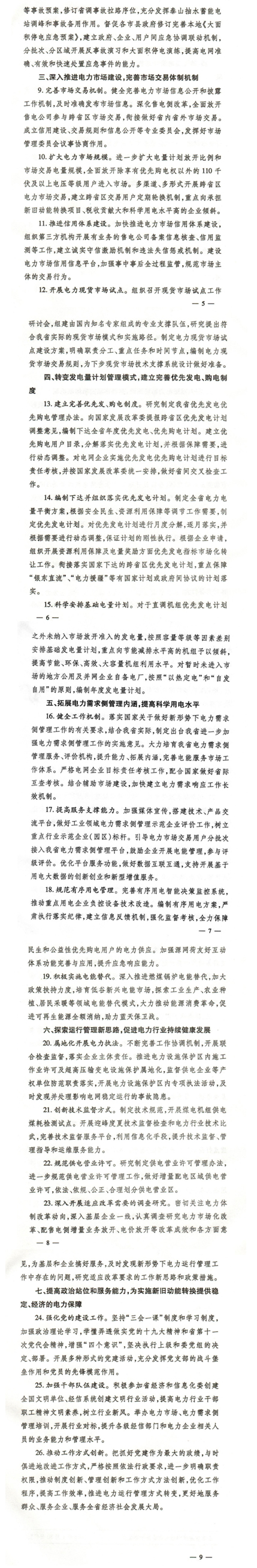 擴大電力市場規模。進一步擴大電量計劃放開比例和市場交易電量規模,全面放開除享有優先購電權以外的110千伏及以上電壓等級用戶進入市場。多渠道、式形式開展跨省區電力市場交易,建立跨省區交易用戶定期輪換機制。