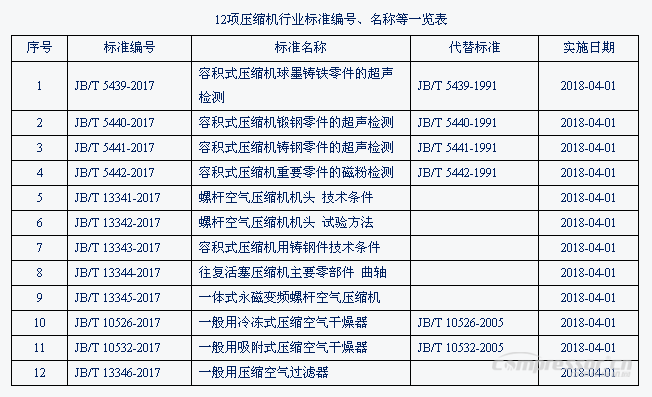 國家壓標委發布壓縮機行業5項國家標準和12項行業標準